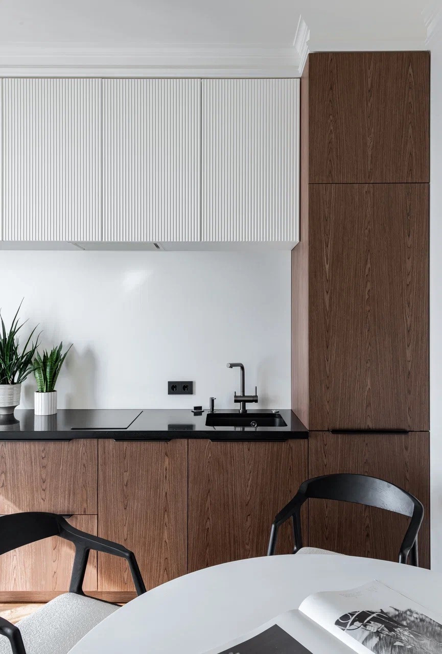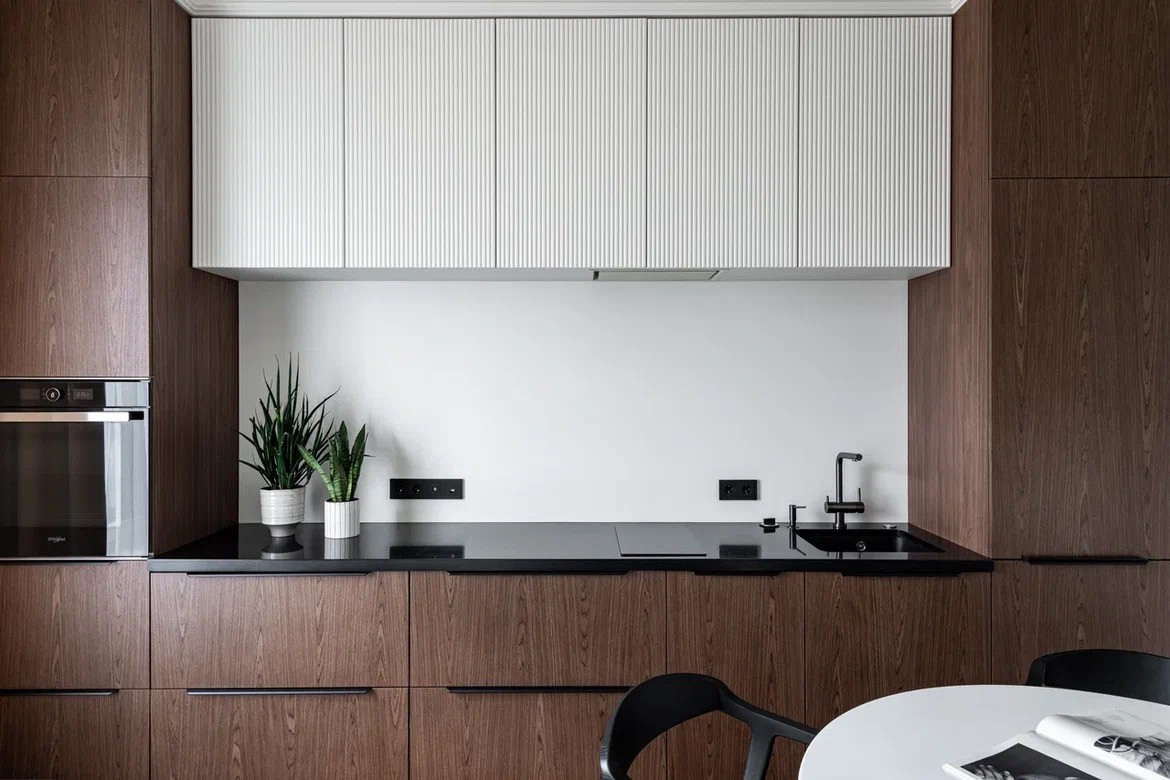 - Встроенная бытовая техника (ПММ 45 см, духовой шкаф, варочная панель, холодильник, вытяжка)