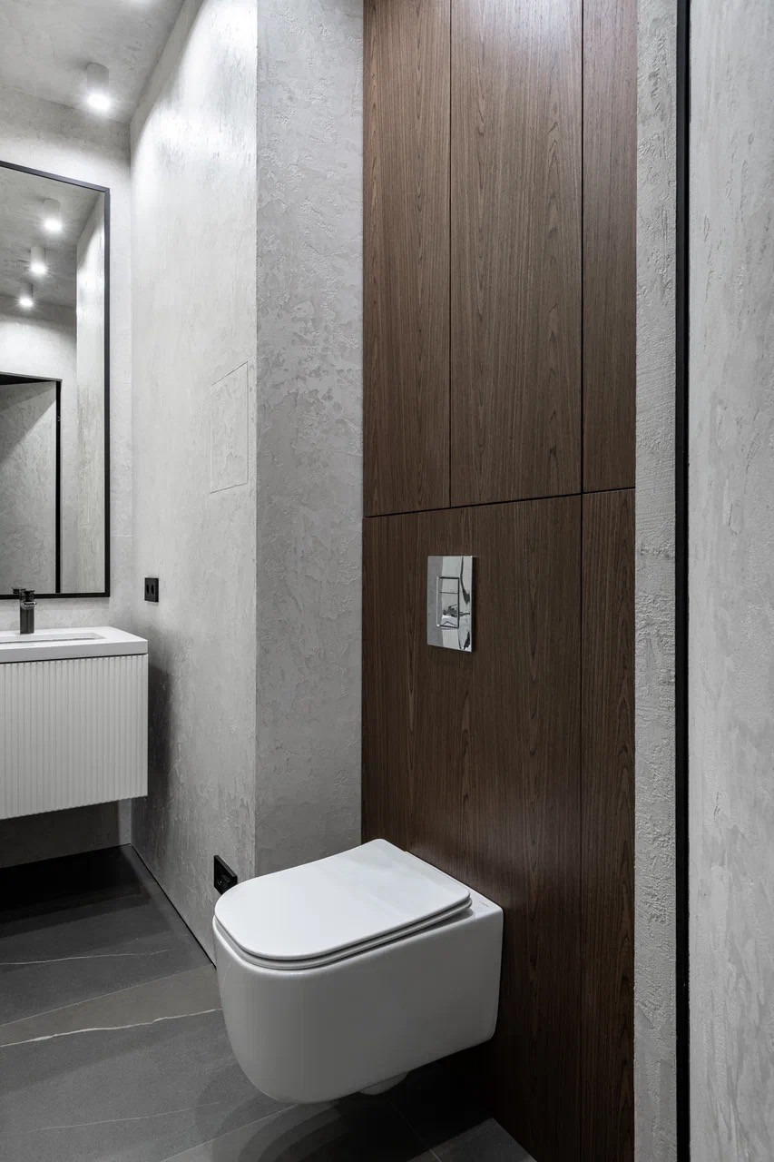 - на полу дорогой паркет и крупноформатный керамогранит