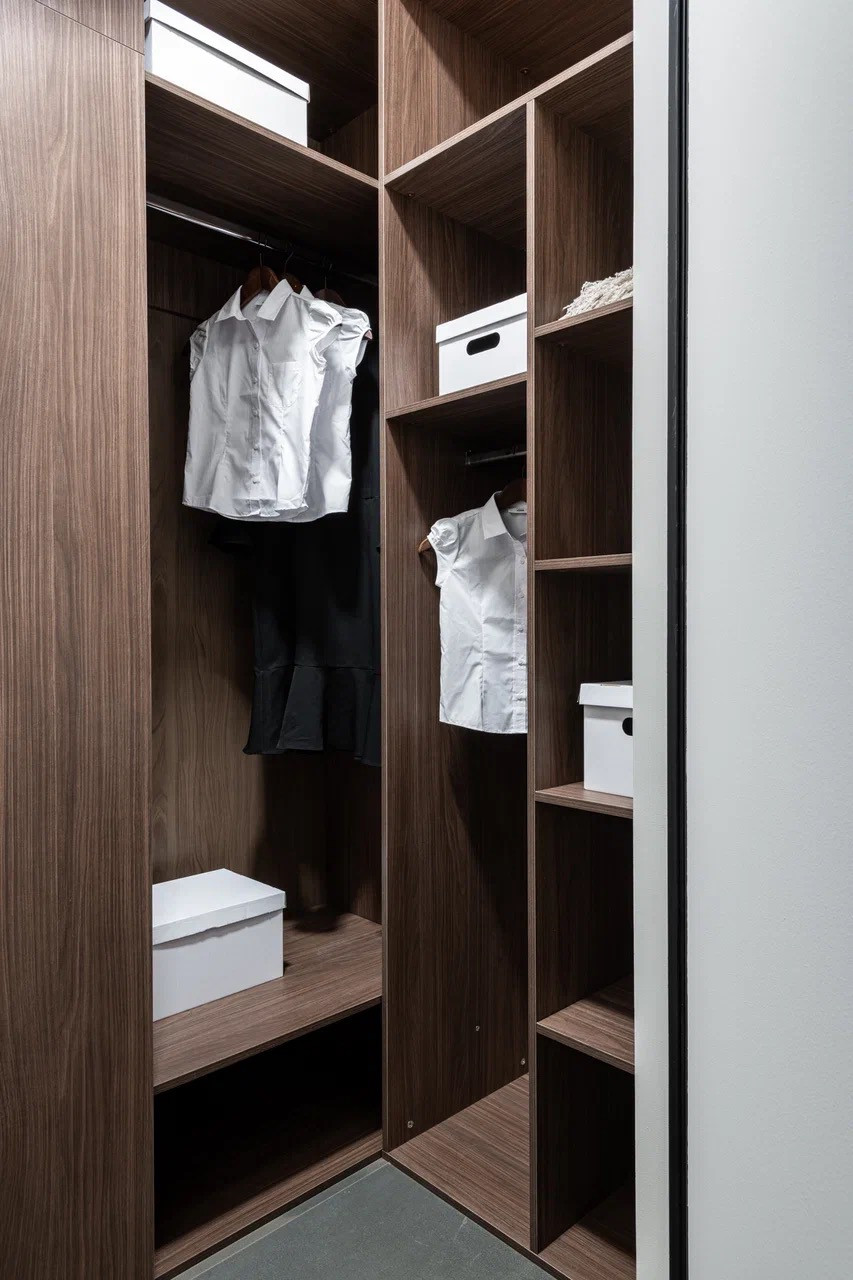 - Отдельная гардеробная комната с функциональной системой хранения