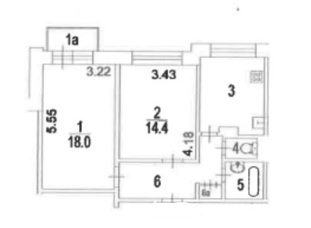 Жилая площадь 32.4 м2