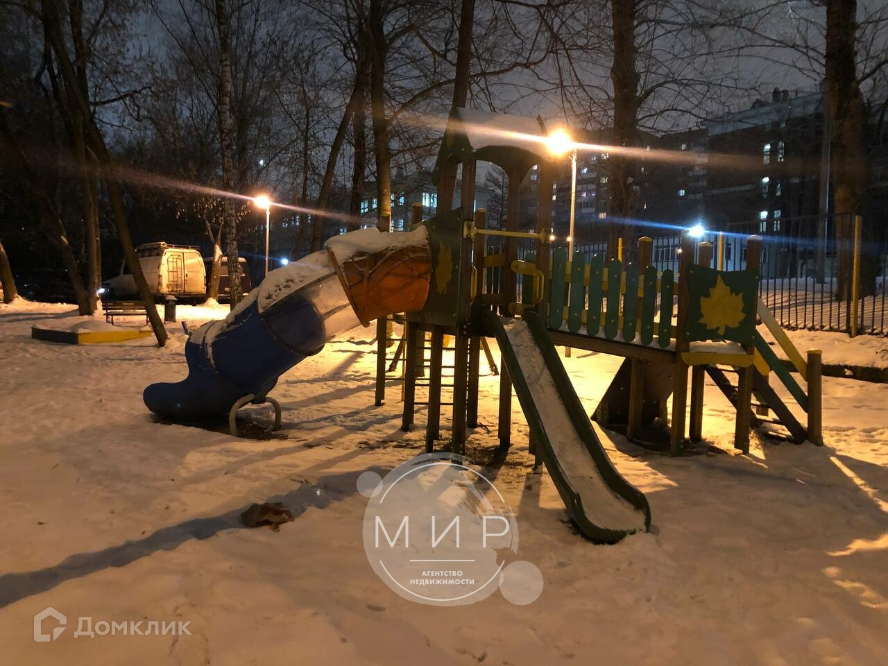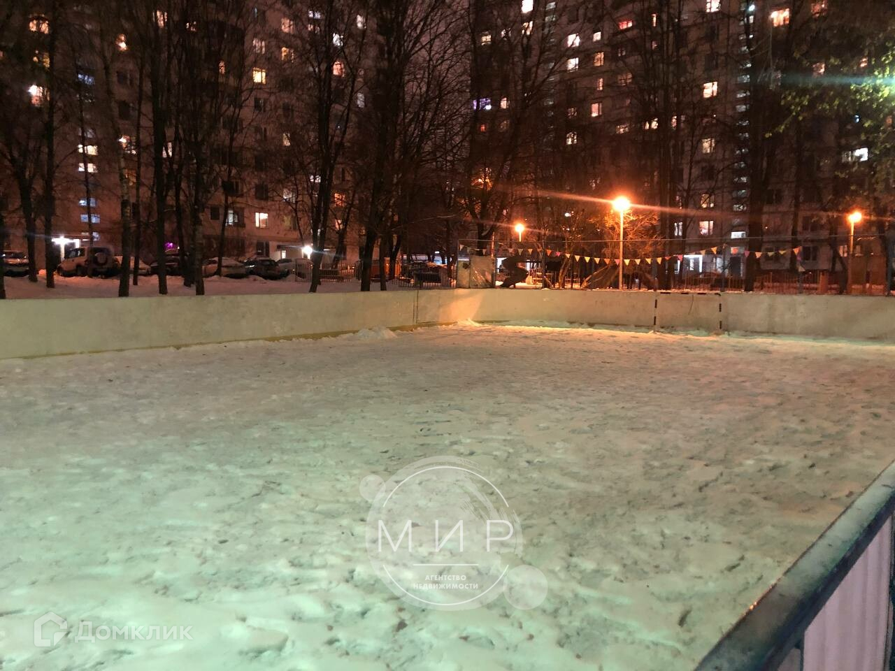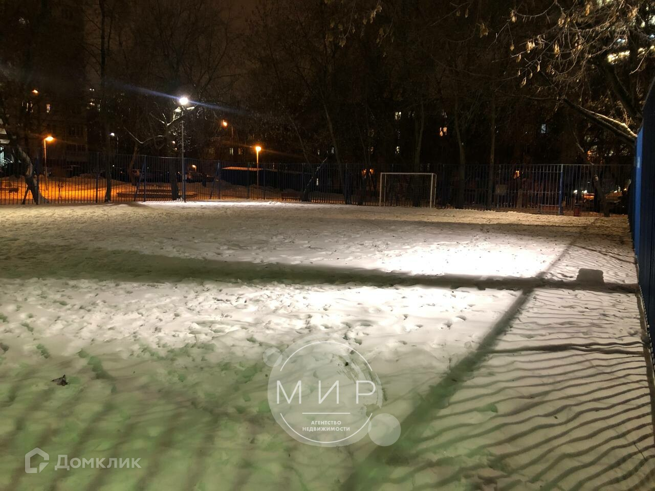 Детская площадка с мягким покрытием для деток, детские зоны и горки, наличие парковочных мест, футбольное поле и коробка для хоккея.