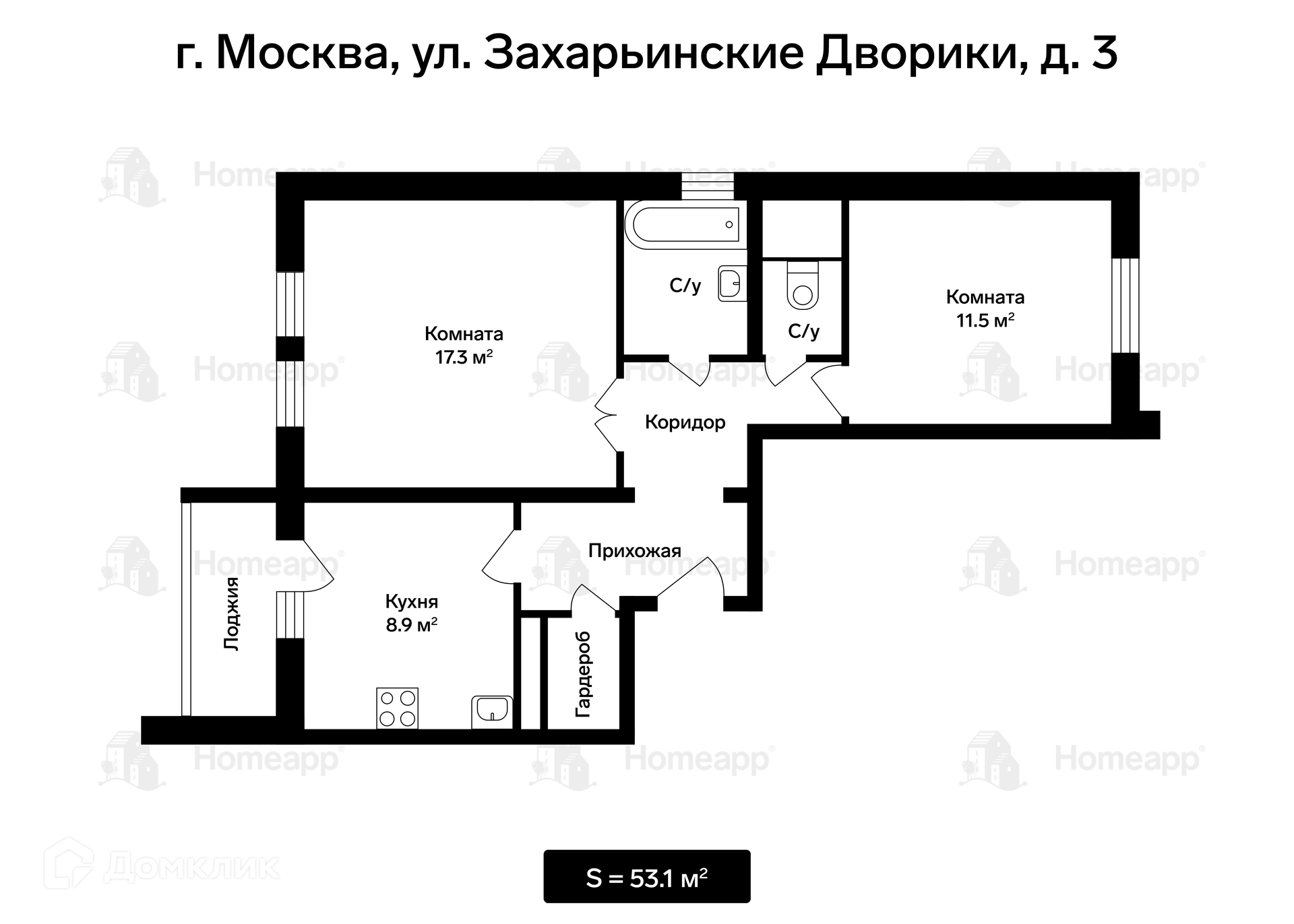 Номер лота: 61959. Прописка Москва. Продаётся большая 2-комнатная квартира 53,1 м² на 8-м этаже 16-этажного панельного дома 2009 года постройки. Комнаты изолированные 17,3 м² и 11,5 м², распашонка, окна выходят на две стороны во дворы, хороший вид. Кухня 8,9 м² с выходом на застеклённый балкон. Большие по площади раздельные ванная и санузел. Просторная прихожая, есть гардеробная, которую можно переделать во второй санузел.