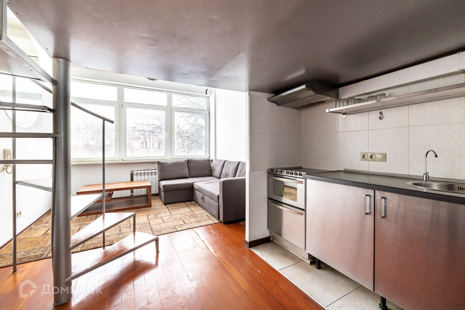 Эксклюзив. Квартира с творческой атмосферой в доме-коммуне на Гоголевском бульваре. Это младший брат знаменитого дома Наркомфина. Он был спроектирован и построен в 1929-1931 годах той же группой архитекторов под руководством Моисея Гинзбурга. Они разрабатывали для Стройкома РСФСР новый тип экспериментального жилища, в котором все бытовые потребности людей  питание, гигиенические процедуры и досуг  должны были быть отделены от личного пространства, где предполагалось предаваться исключительно "высоким" занятиям  самообразованию и отдыху.         В квартире два уровня: первый (верхний) - вход в квартиру, с/у, антресоль, на которой можно оборудовать спальное место или кабинет. На втором уровне (нижнем) - гостиная с потолком 4,5 метра, небольшая кухня, с/у с душевой кабиной, стиральной машиной и раковиной, изолированная комната. Из гостиной прямо через окно можно выйти на эксплуатируемую крышу, на которой, в теплое время года, стоят кадки с цветами, шезлонги и столики. Сейчас в доме проводится полная реконструкция фасадов и общественных зон. В квартирах заменена система отопления.