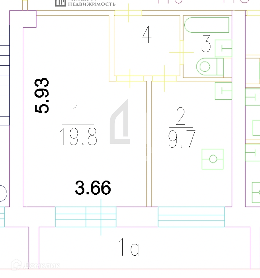 Жилая площадь 19.8 м2