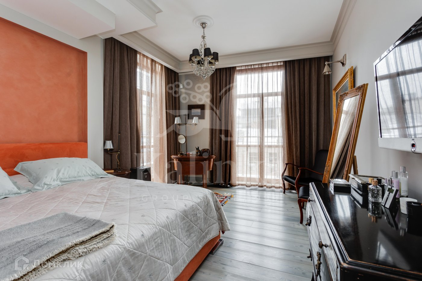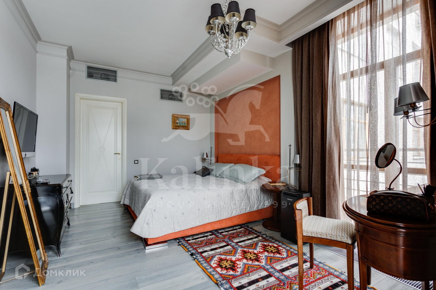 Планировка: гостиная столовая с видом на аристократичный и статусный переулок старой Москвы, кухня с кладовой, мастер-спальня с санузлом и гардеробной, гостевая спальня с санузлом, кабинет, гостевой санузел, гардеробная, постирочная, кладовая, два балкона с видами во двор и на переулок.