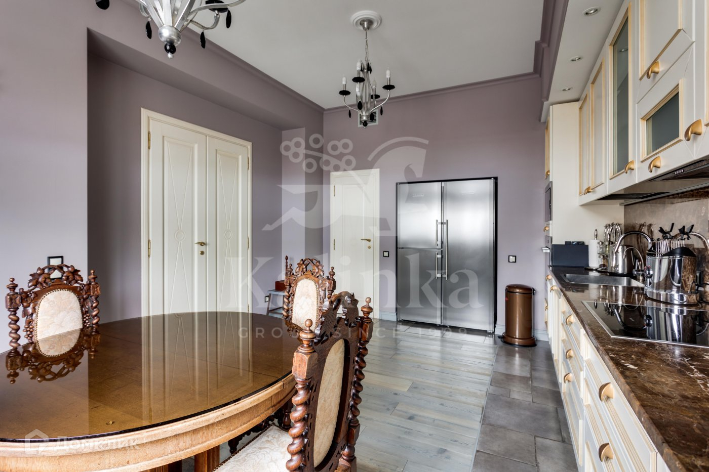 Дизайнерское решение от бюро Studio KB. Отделка выполнена из дорогих и высококачественных материалов. Напольное покрытие из Италии, массив кедра Larice con Nodi. Столешница, подоконники из итальянского мрамора. Квартира наполнена антикварной мебелью из Италии, Франции и современными именитыми фабриками из Европы. Техника Miele. Кухня и мебель от Belligotti, Morfeus Materassi, Mastro Raphael. Люстры и светильники от Ferroluce, Patrizia Garganti и Zonca art-deco. Сантехника от Devon&Devon, Puntotre, Oldnavy, Doroty.