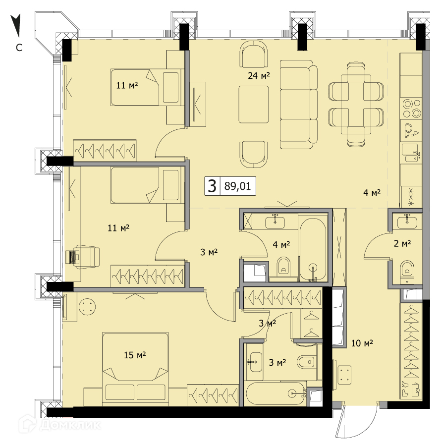 Общая площадь 89.01 м2