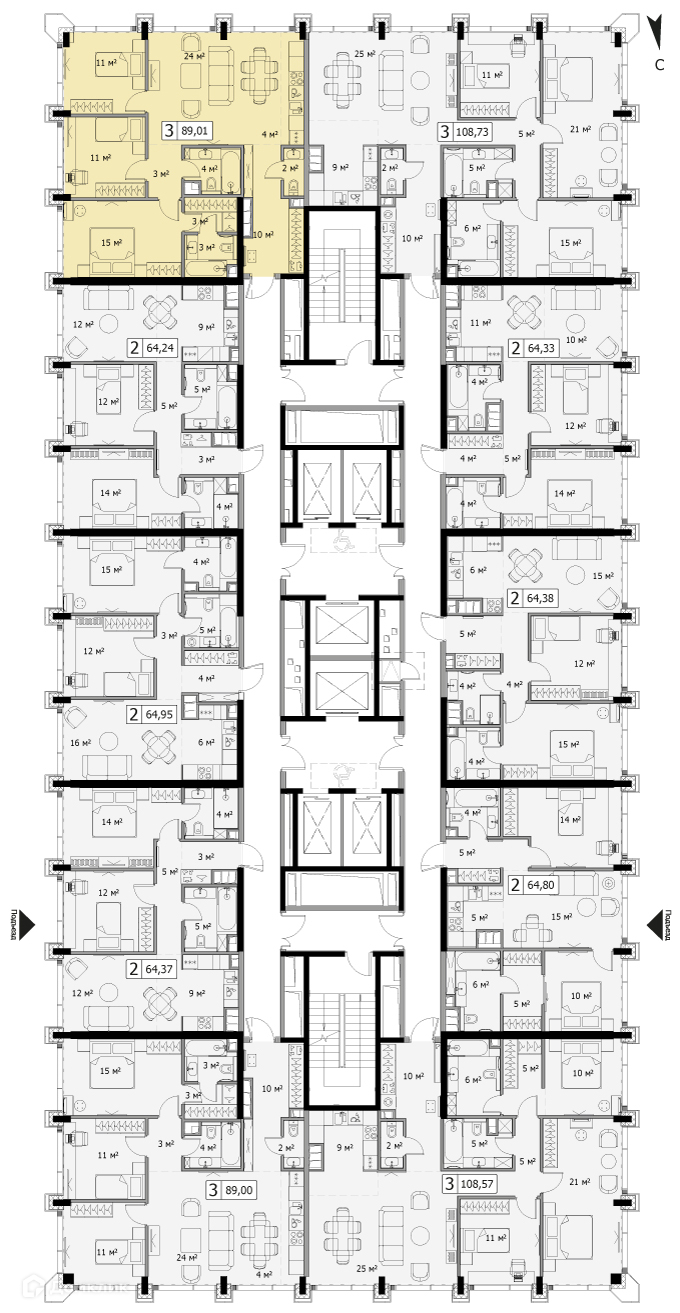 Предлагается 3х - комнатная квартира в новом доме. Общей площадью 89.01 кв. м на 45 этаже,  1 подъезд.  Оперативный показ. Все документы в порядке. Лот № N73515