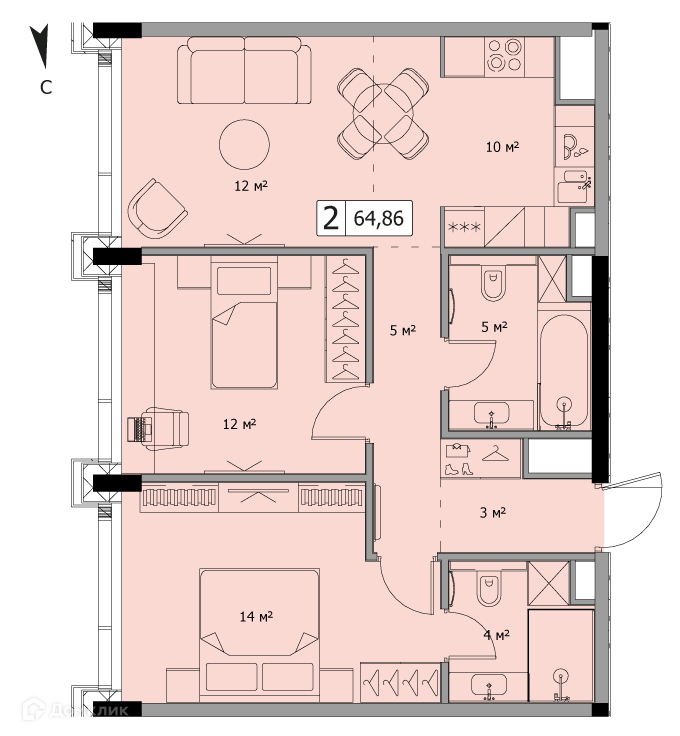 Общая площадь 64.86 м2