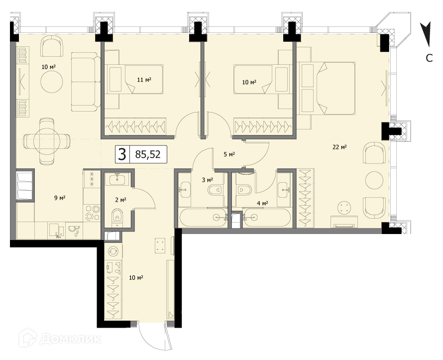 Общая площадь 85.52 м2