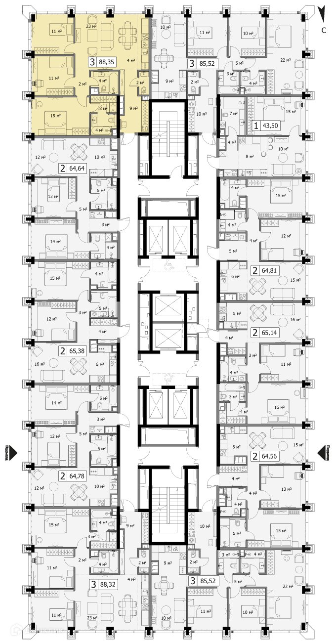Предлагается 3х - комнатная квартира в новом доме. Общей площадью 88.35 кв. м на 43 этаже,  1 подъезд.  Звонить с 9:00 до 21:00. Доступна для покупки по ипотеке. Лот № N73493