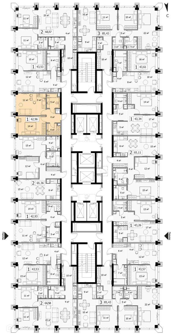 Общая площадь 42.96 м2