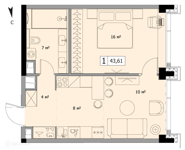 Общая площадь 43.61 м2