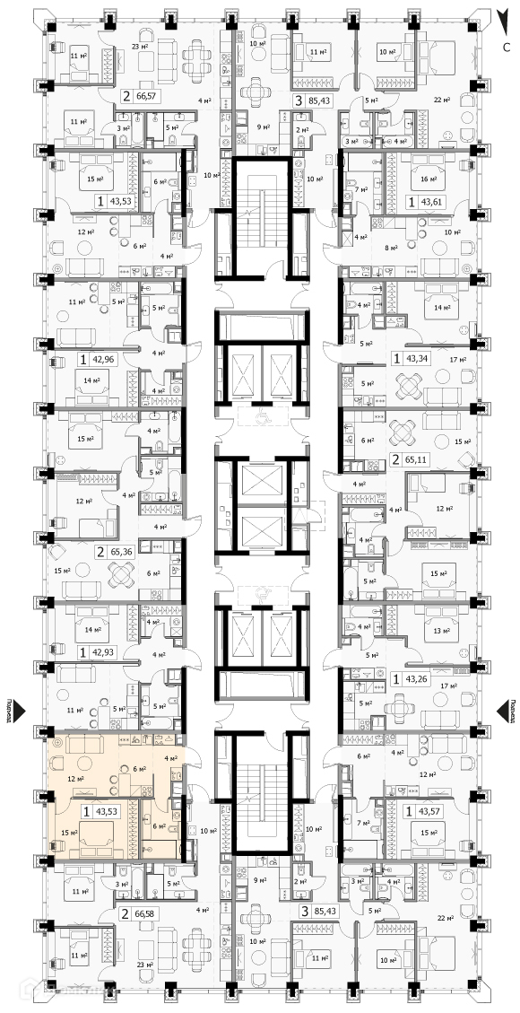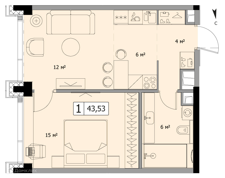 Общая площадь 43.53 м2