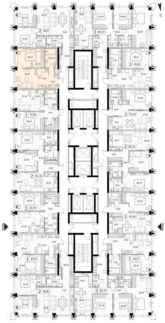 Предлагается однокомнатная квартира в новом жилом комплексе. Общей площадью 43.53 кв. м на 24 этаже,  1 подъезд.  Хорошее транспортное сообщение. Вся инфраструктура в шаговой доступности. Лот № N73256