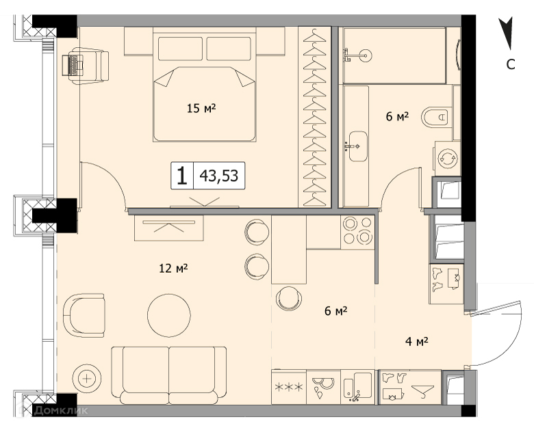 Общая площадь 43.53 м2