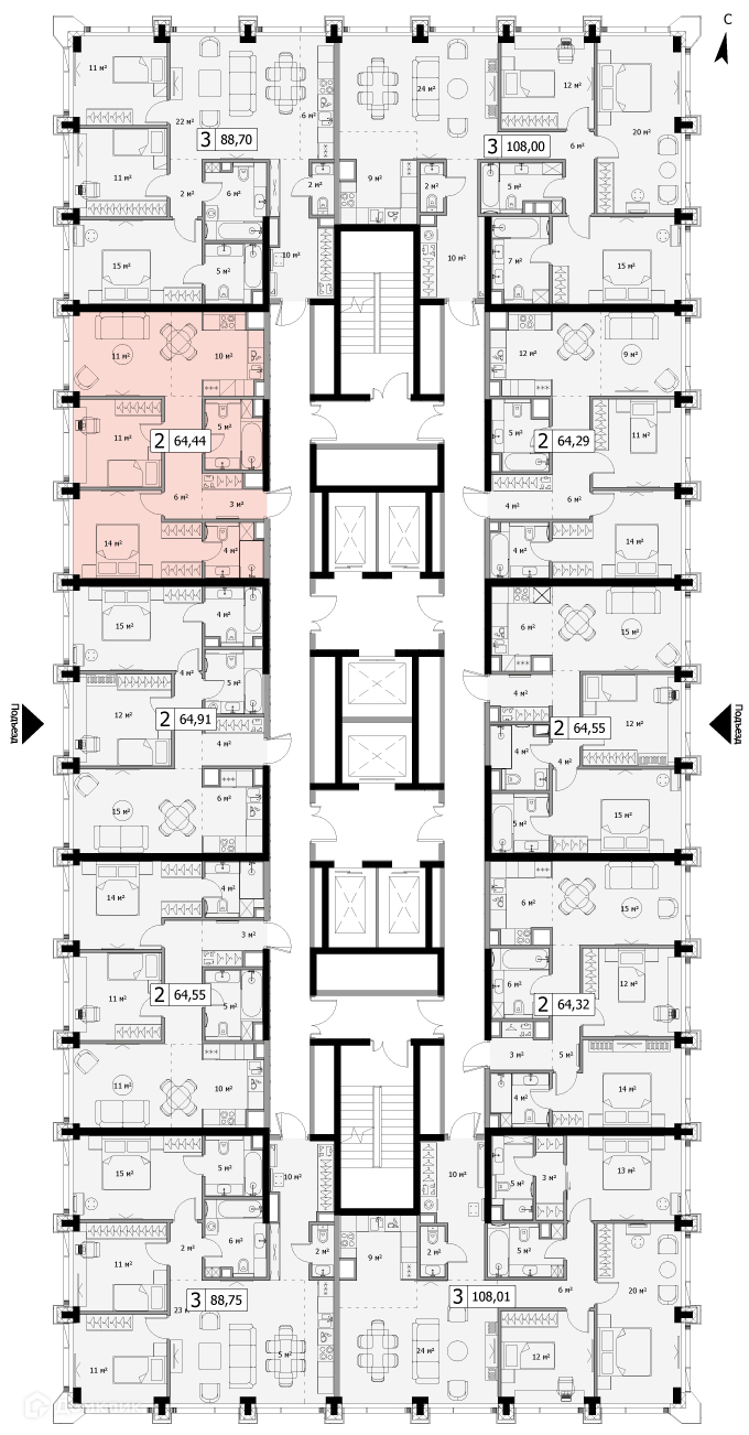 Общая площадь 64.44 м2