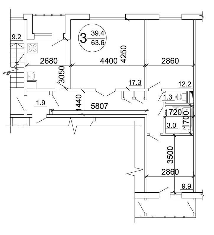 Количество комнат 3