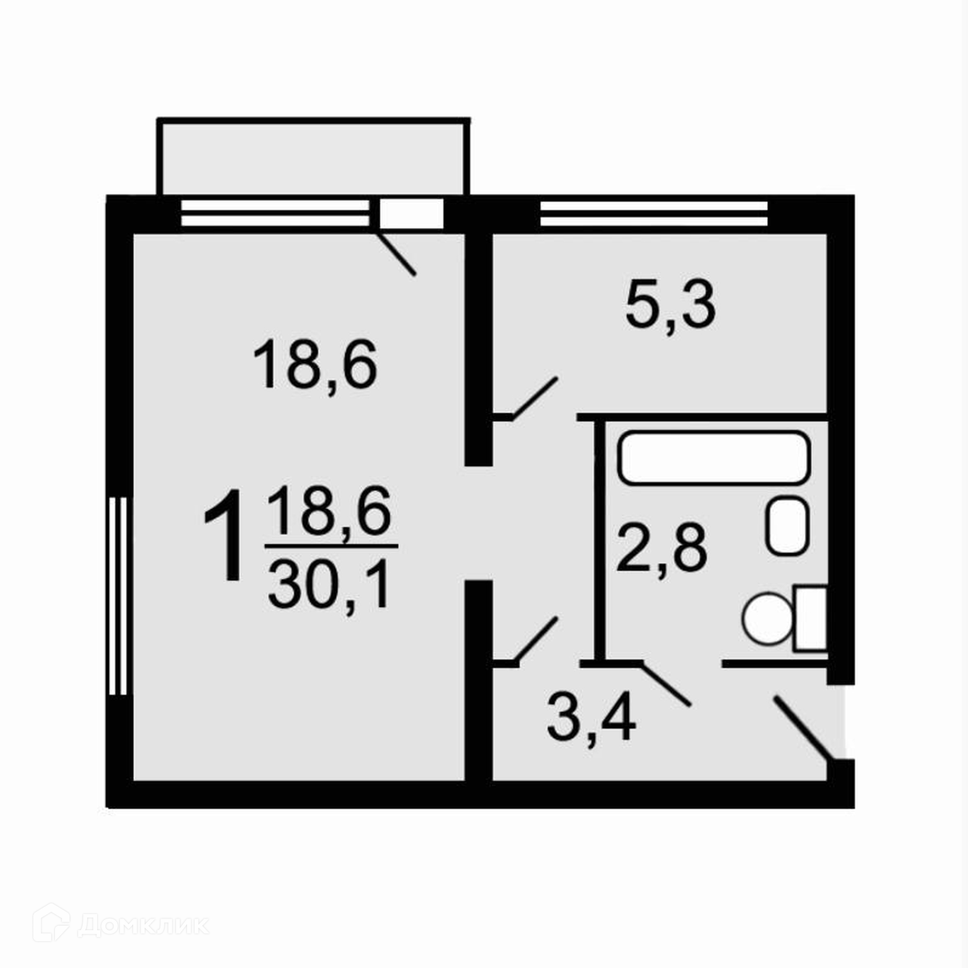 Общая площадь 30.1 м2