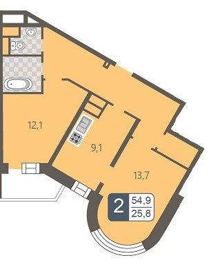Жилая площадь 25.8 м2