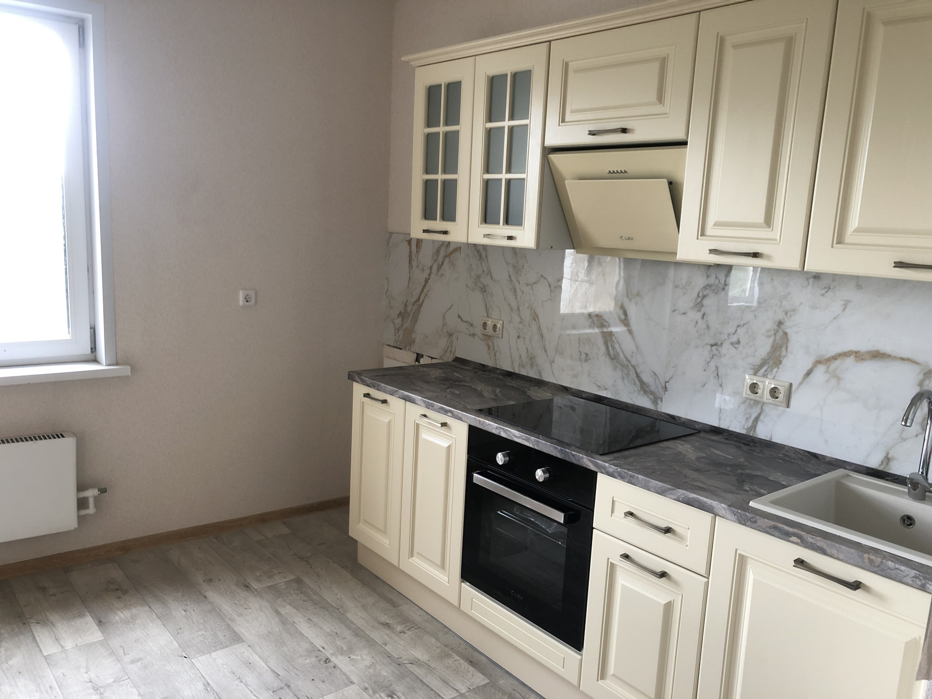 Новая квартира в которой никто не жил в новом монолитном доме.Выполнен дизайнерский ремонт в ванной и туалете с использованием дорогого керамогранита (сантехника и смесители GROHE и Jacob Delafon), Установлена новая кухня. Можно заезжать жить, не надо тратить время на ремонт. Утеплен и остеклен балкон(окна VEKA)-плюс три метра к жилплощади! На балконе теперь можно сделать полноценное рабочее место или место отдыха. Общая площадь с балконом 57 метров, без балкона 54,9.  Эти квартиры самые большие в доме.Есть очень хорошие планировочные решения. Много мест для хранения. Вид из окна в тихий двор а не на шумную станцию. Солнечная сторона. Самый лучший этаж.