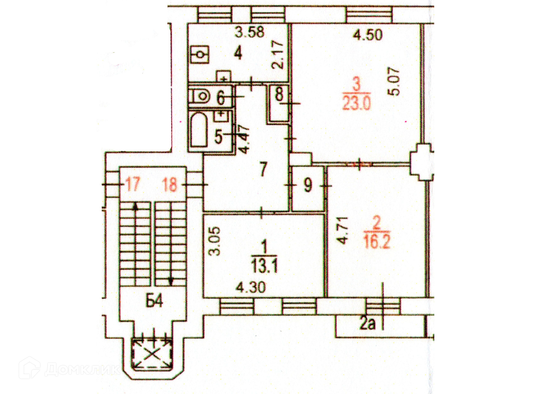 Планировка: три комнаты 13.1, 16.2 и 23 м²; прихожая 10.6 м², кухня 8 м² на два окна. Санузел раздельный, ванная комната - 2.8 м², туалетная - 1.4 м².