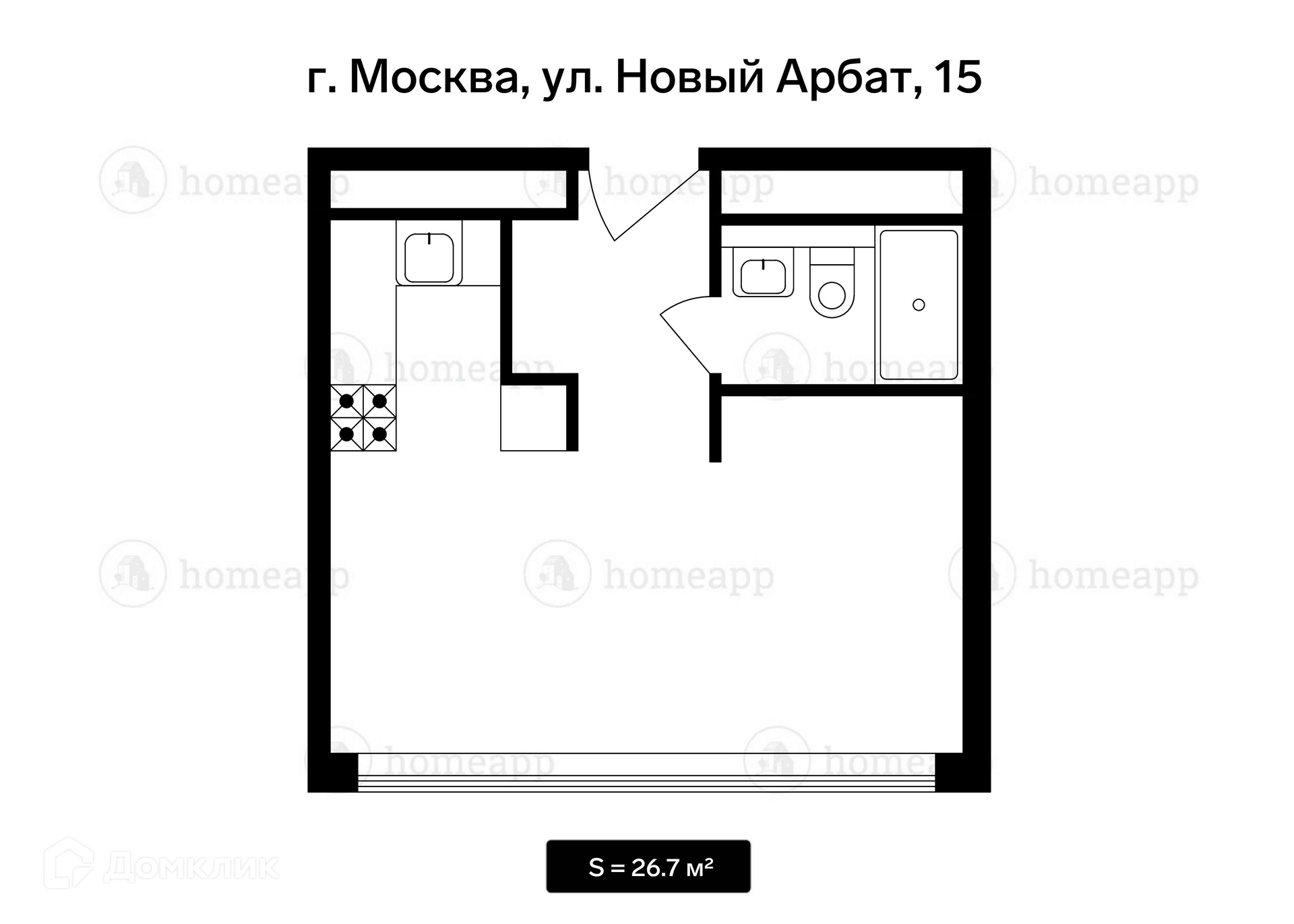 Общая площадь 26.7 м2