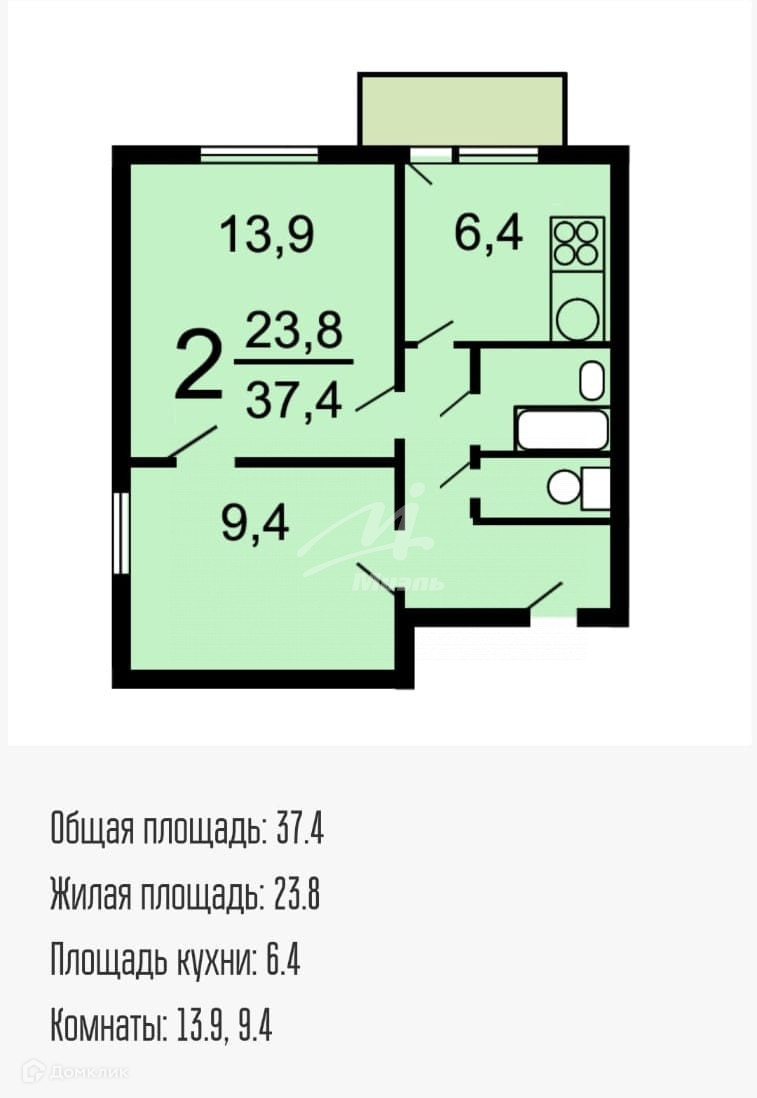 Общая площадь 39 м2