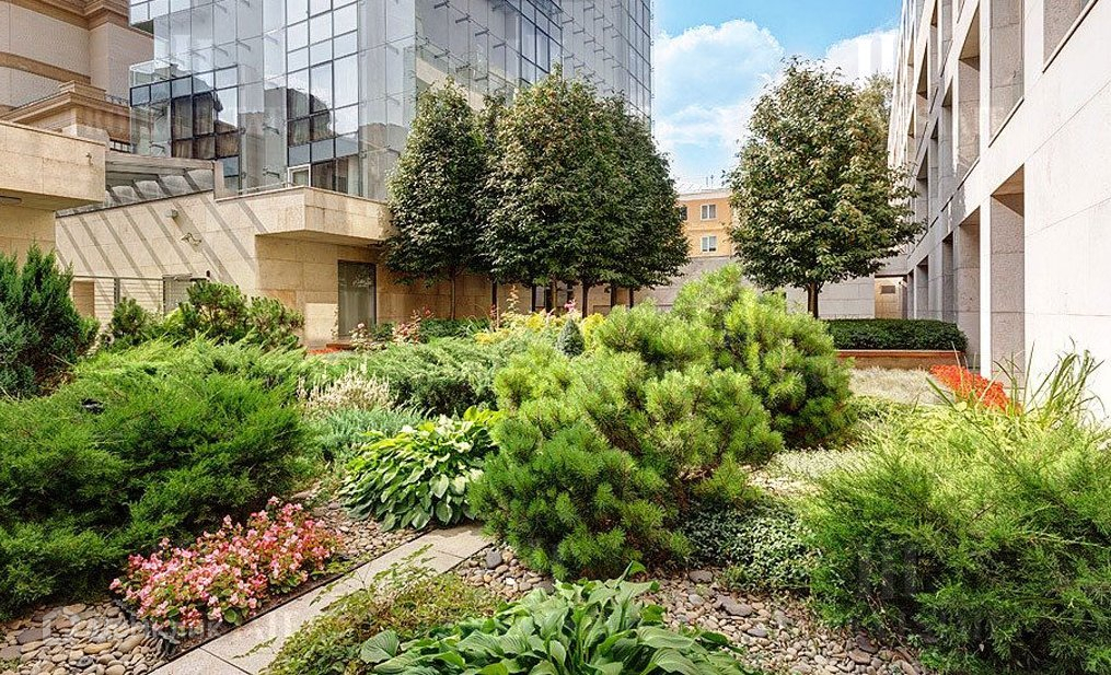 закрытой территории прекрасный ландшафтный сад. Жилой комплекс "Кристалл