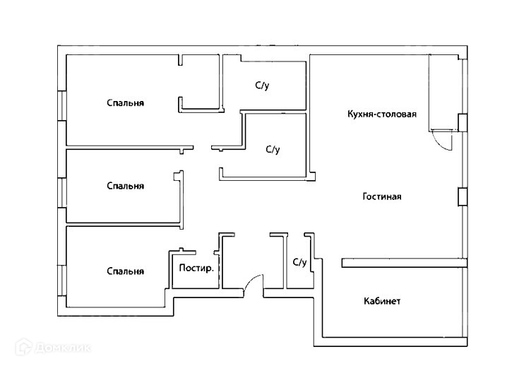 на Остоженке. Можно спланировать гостиную, кухню-столовую, три спальни,