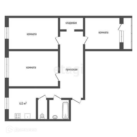 Общая площадь 58.6 м2