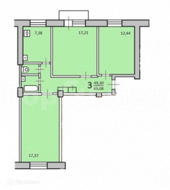 Общая площадь 70 м2