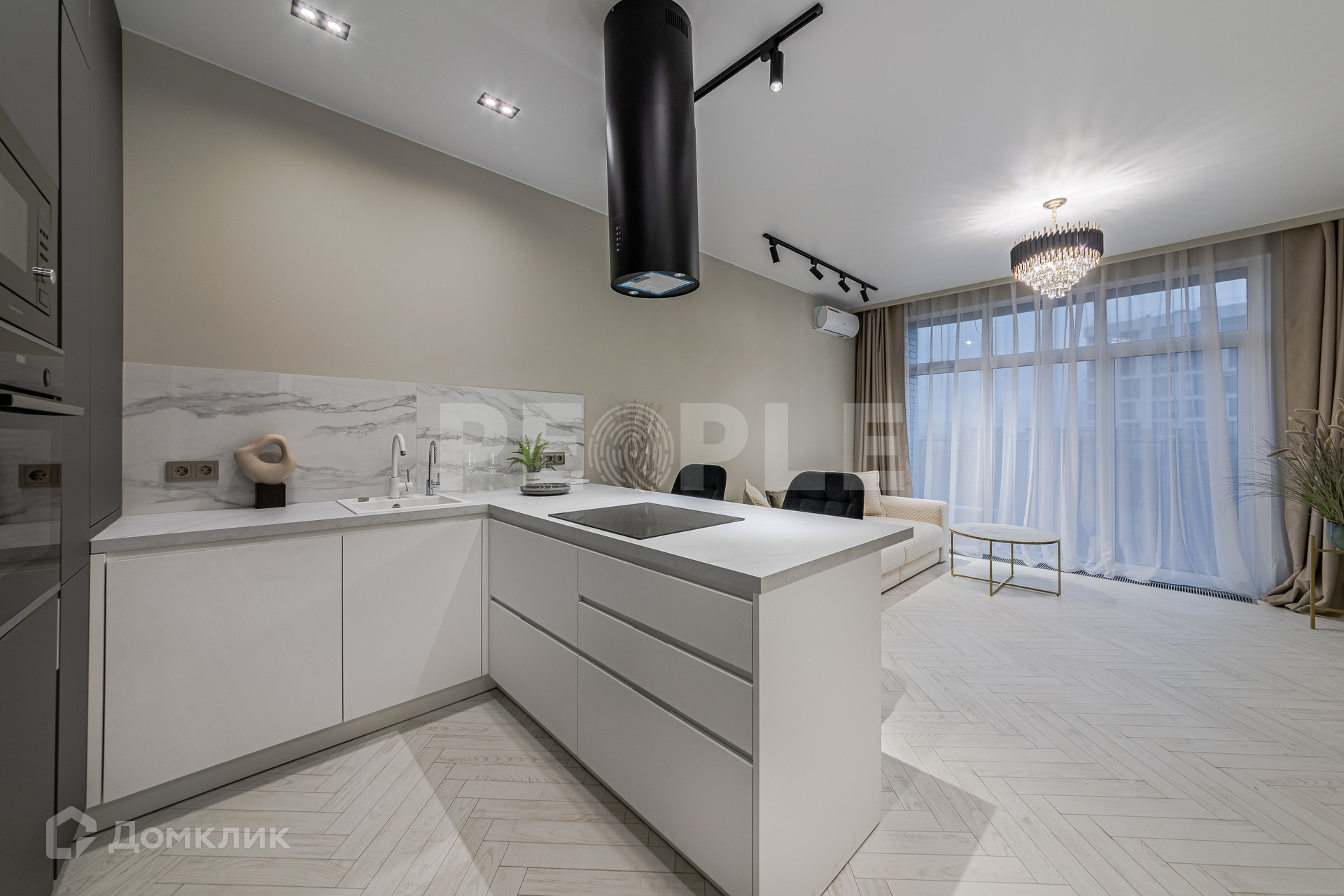Квартира оснащена всей необходимой техникой, установлена система умный дом.