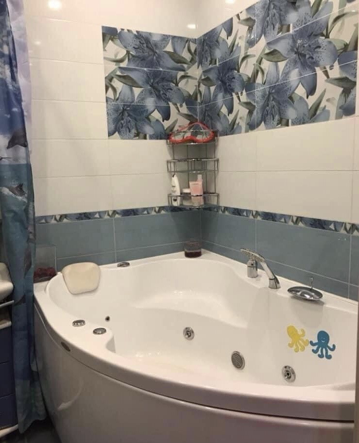 Очень теплый дом, есть консьерж, подъезд чистый, постоянно наблюдают за чистотой и порядком. Площадка закрыта, вход в тамбур через ключ, никто случайный на зайдет. Квартира укомплектована всем необходим доя комфортного продвижения. Стоит сплит система, на окнах установлена защита от детей, мебель практичная, очень вместительная. Зал поделен на небольшую зону рабочую, можно поставить компьютер для работы или для занятий учебных для детей. Диван раскладывается, имеет нишу доя хранения. В спальне кровать в ортопедическим матрасом, есть также в ней ниша доя хранения белья. Мебель с подсветкой, удобный шкаф для одежды. Кухня укомплектована посудомоечной машиной, машиной для уничтожения мусора, стоят фильтры на воду, микроволновая печь, холодильник. Балкон с кухни совмещен, дополнительно висит обогреватель на балконе. Очень просторная кухня, одно удовольствие на ней готовить. В ванне джакузи, стиральная машина, шкаф для принадлежностей.