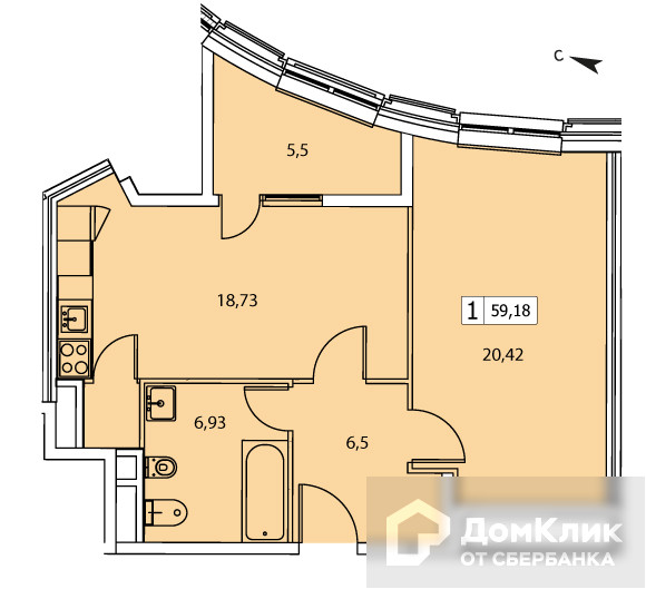 Общая площадь 59.67 м2