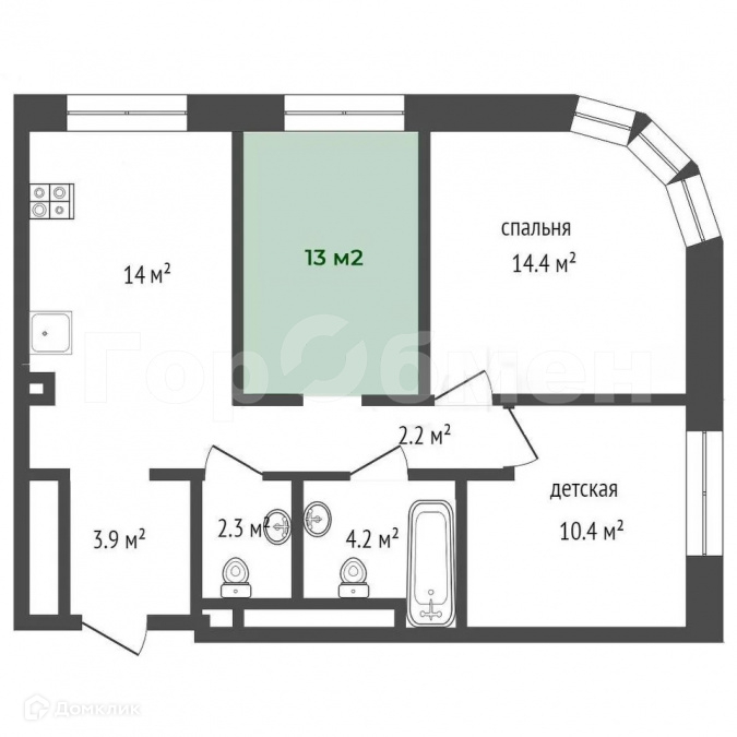 Площадь кухни 14 м2