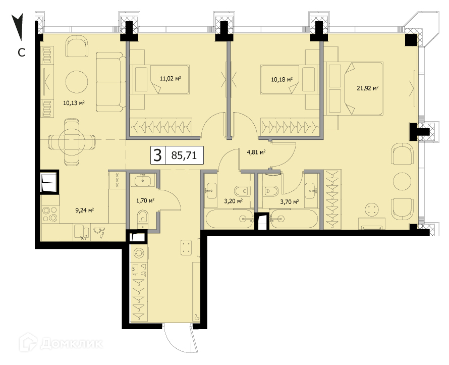 Общая площадь 85.71 м2