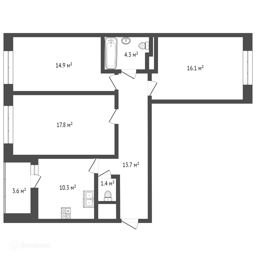 Общая площадь 78.5 м2