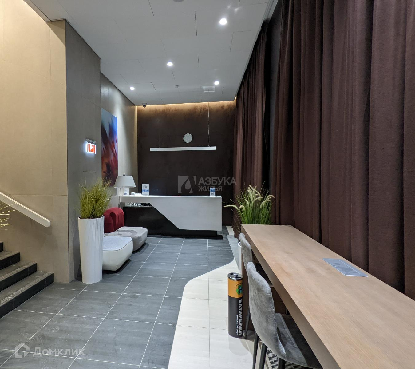 В корпусе один подъезд. В холле подъезда стойка консьержа, небольшая зона ожидания со столом и пуфом. Три лифта, один грузовой и два пассажирских. Все лифты спускаются в подземный паркинг. Есть колясочная комната. Из подъезда выход на улицу и во внутренний двор.