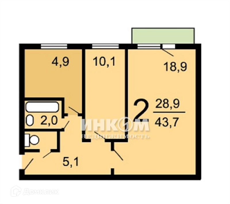 Общая площадь 43 м2