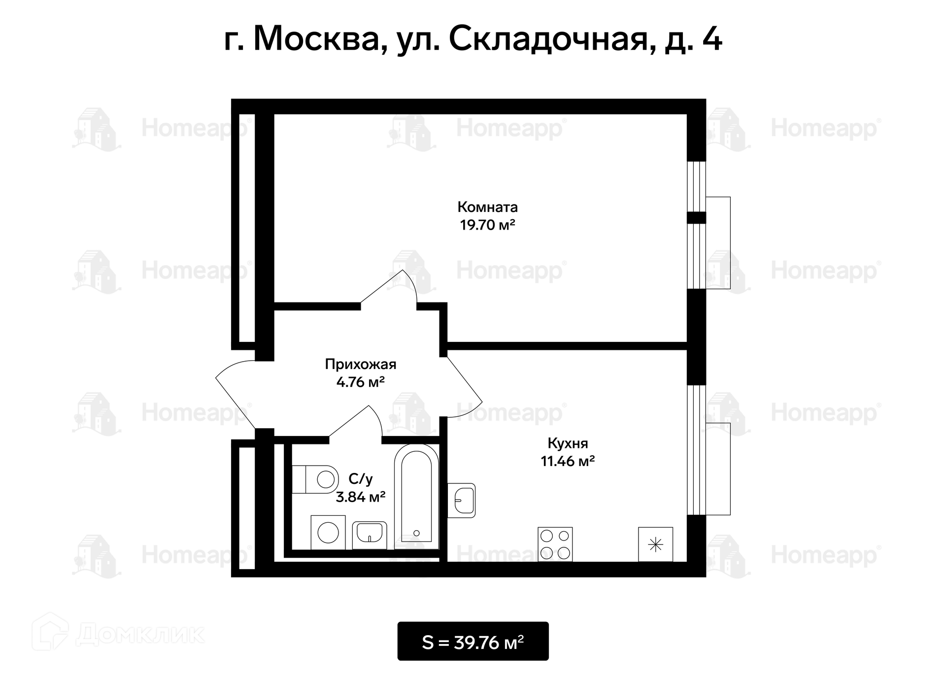Общая площадь 39 м2