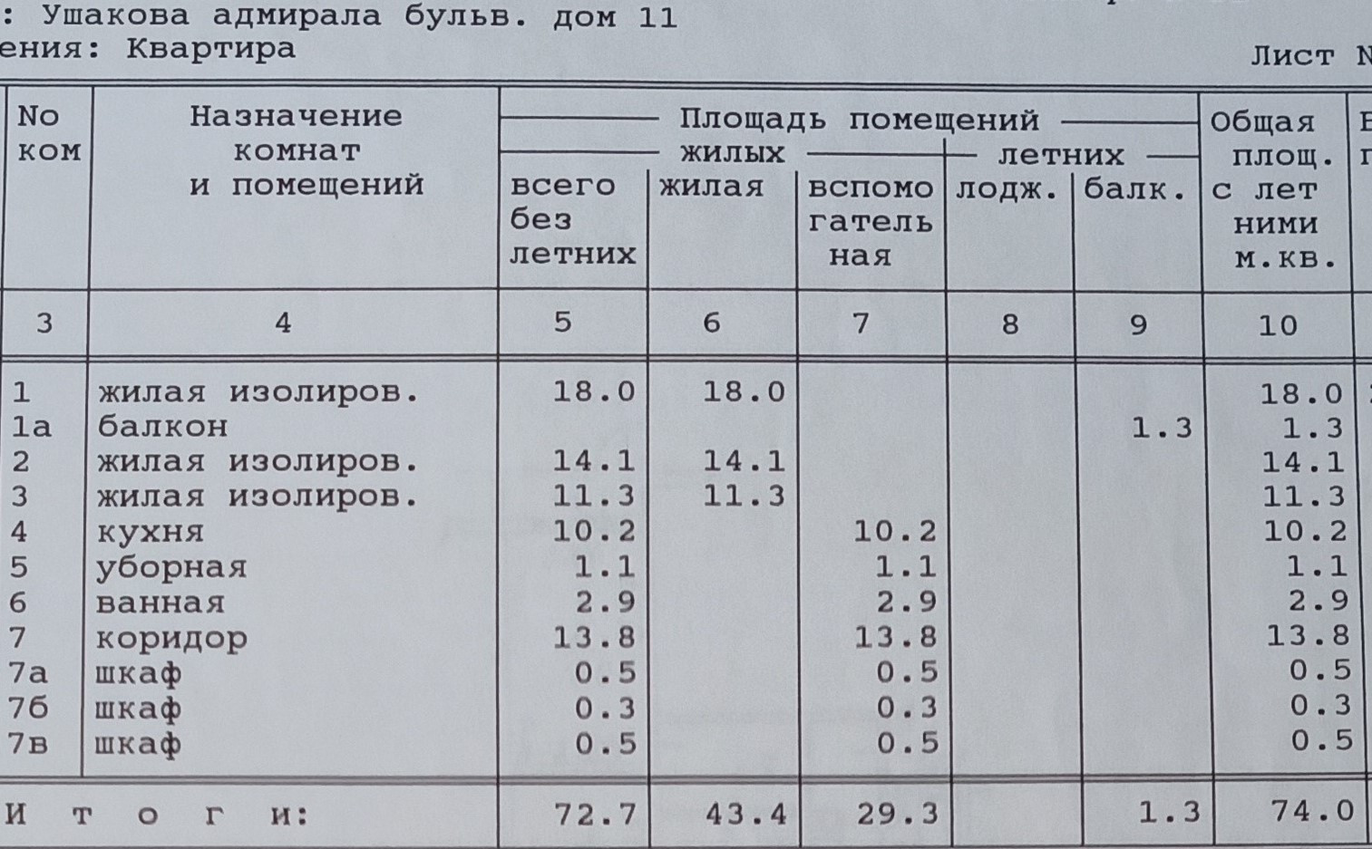 Общая площадь с учетом балкона-74 кв.м.
