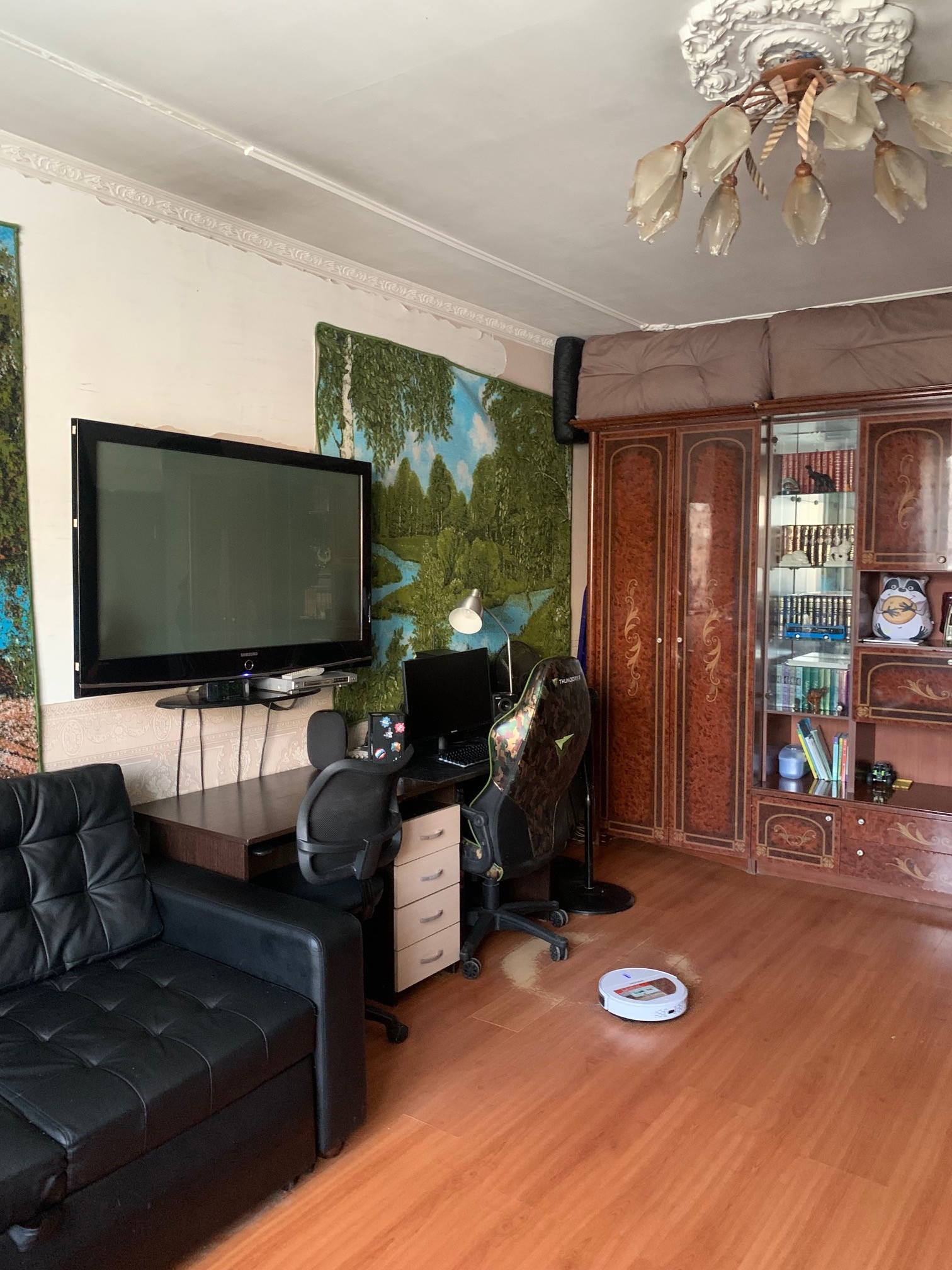 в хорошем состоянии; во время ремонта выравнены потолки, стены, полы;