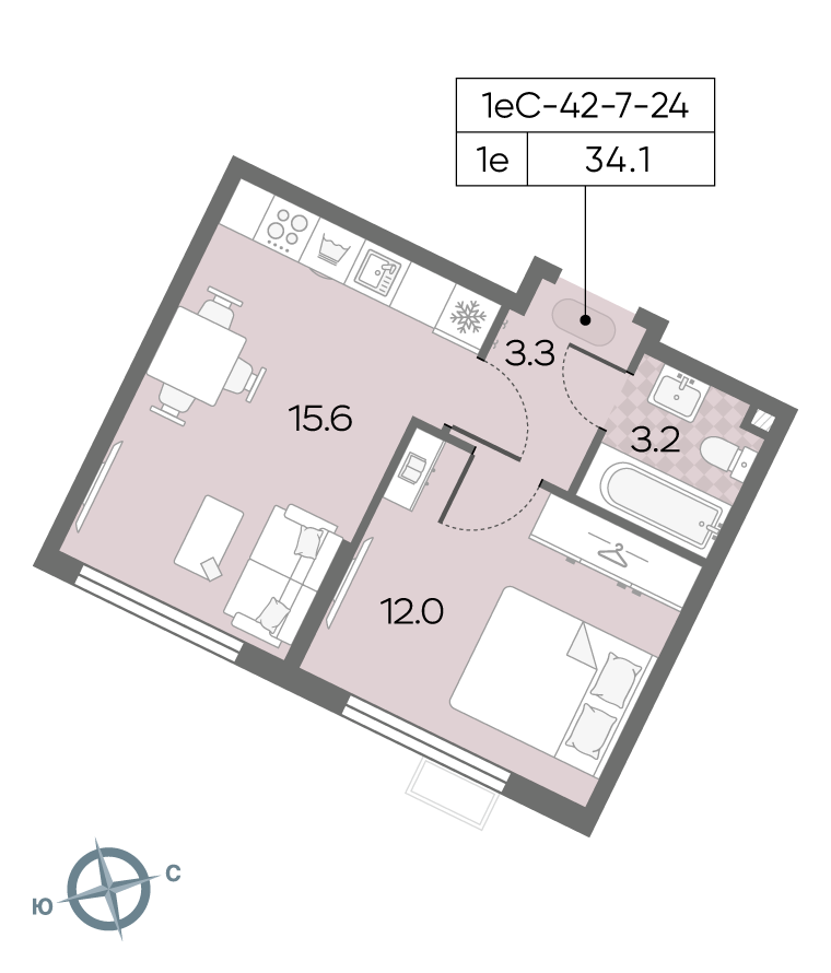 Общая площадь 34.1 м2