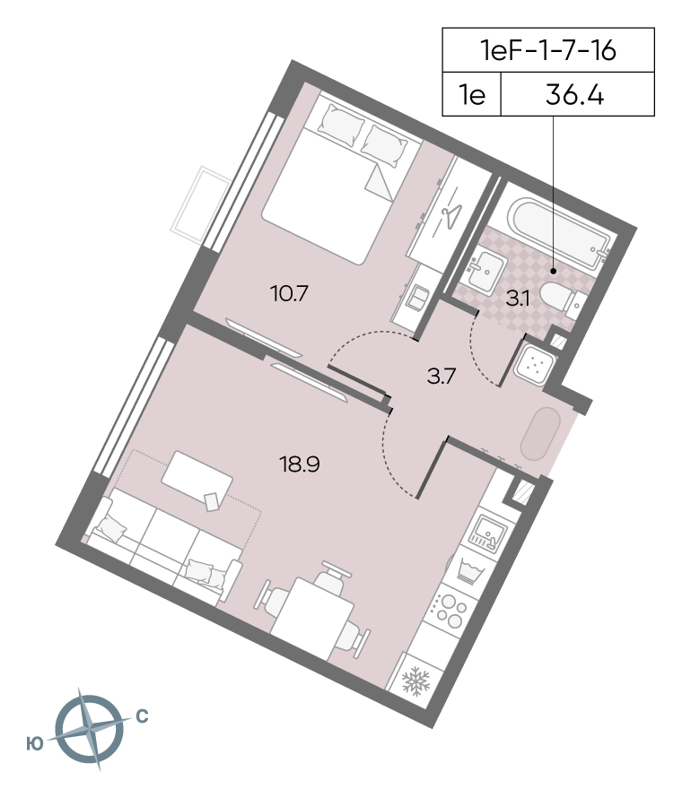 Общая площадь 36.4 м2