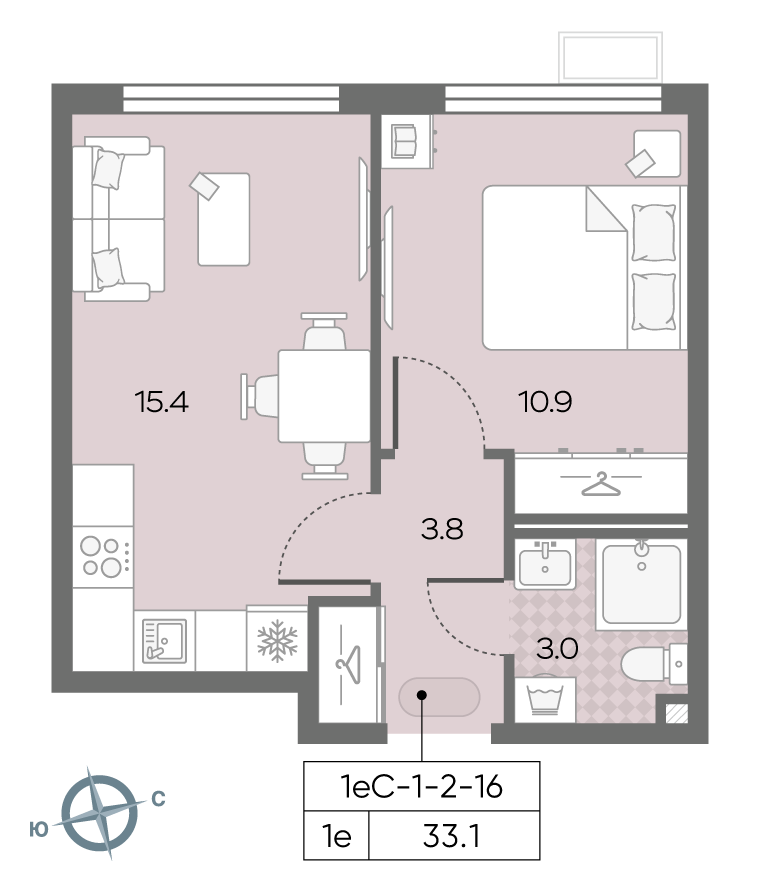 Общая площадь 32.7 м2