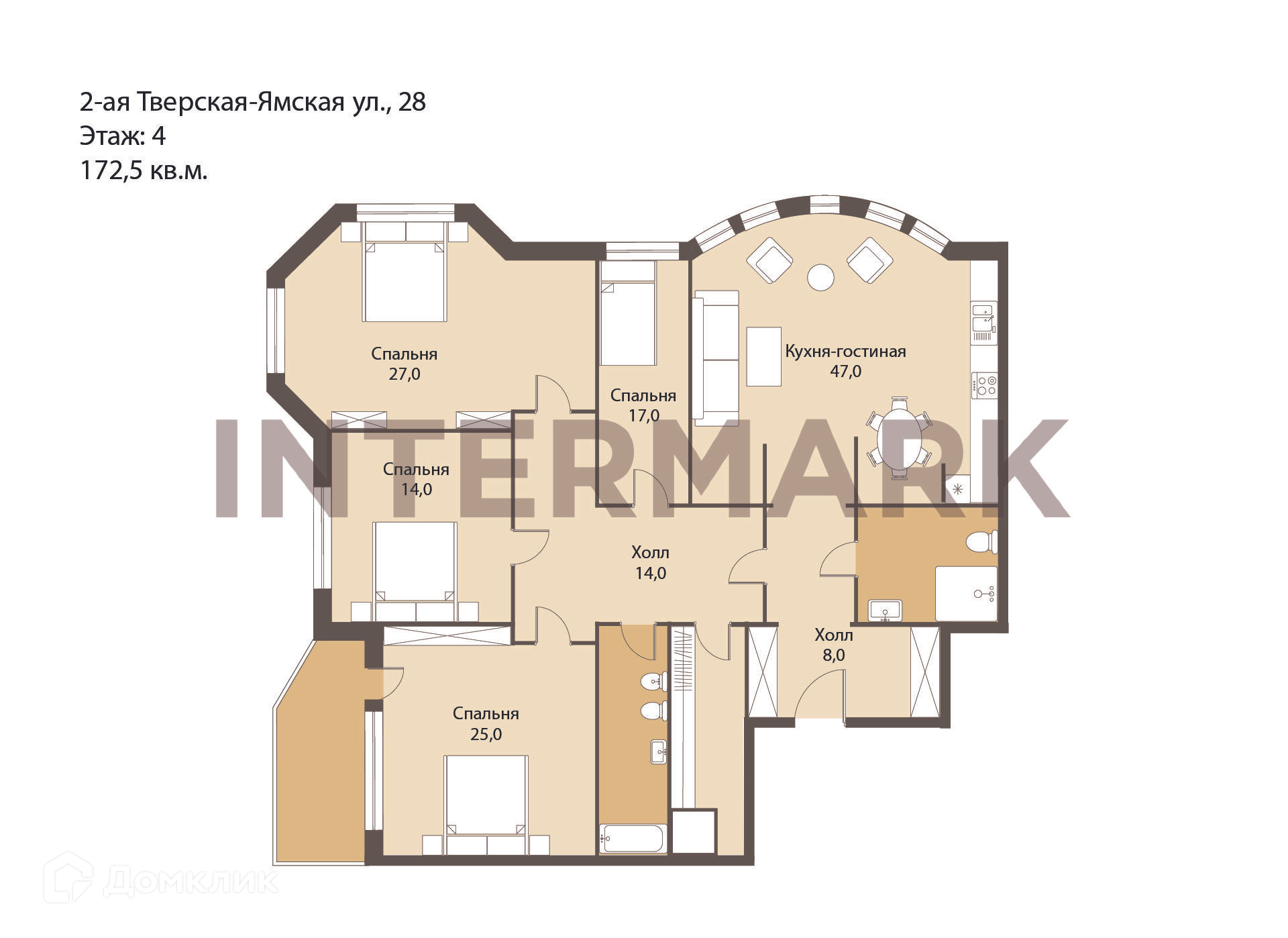 5-комнатная квартира, 172.5 м2, этаж 4 / 7, на продажу в Москве, 2-я Тверская-Ямская улица, 28