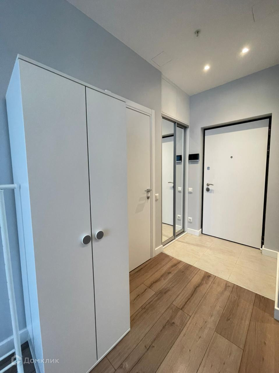 В коридоре предусмотрена шкаф. Уже установлены домофон, роутер.