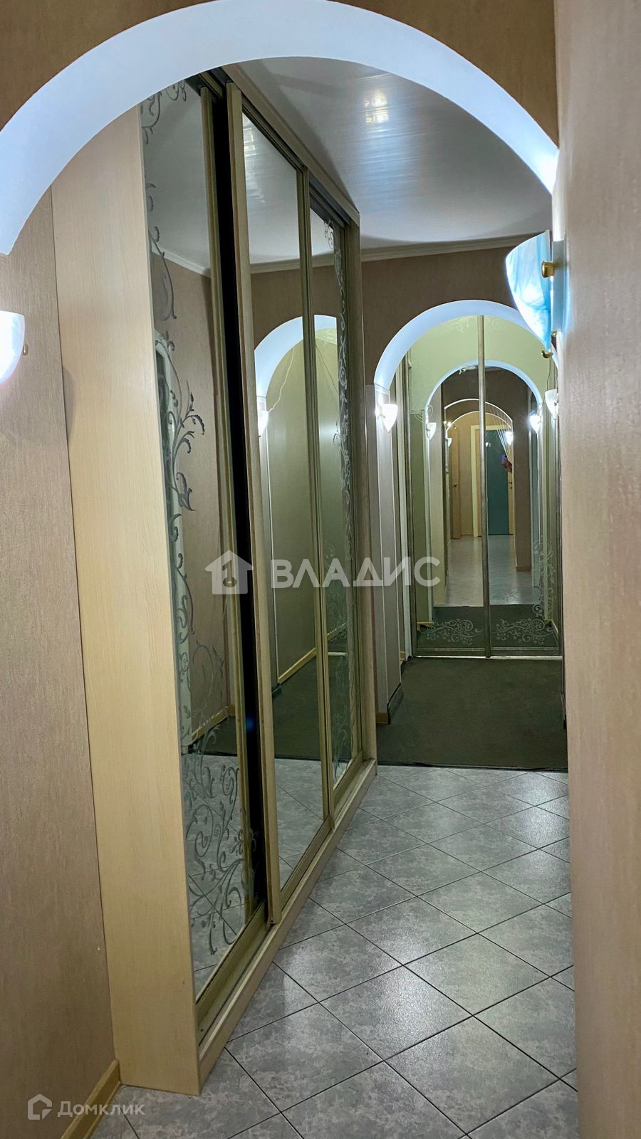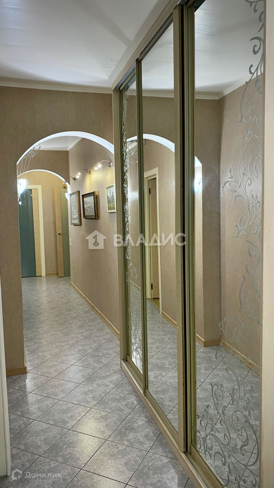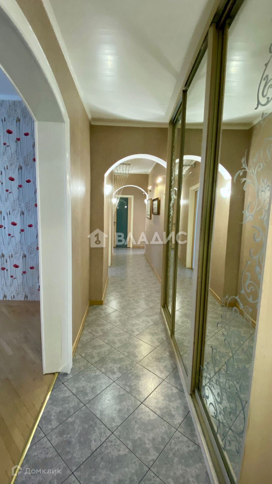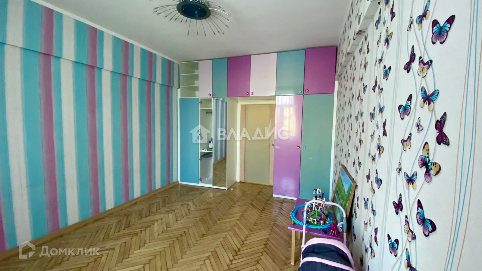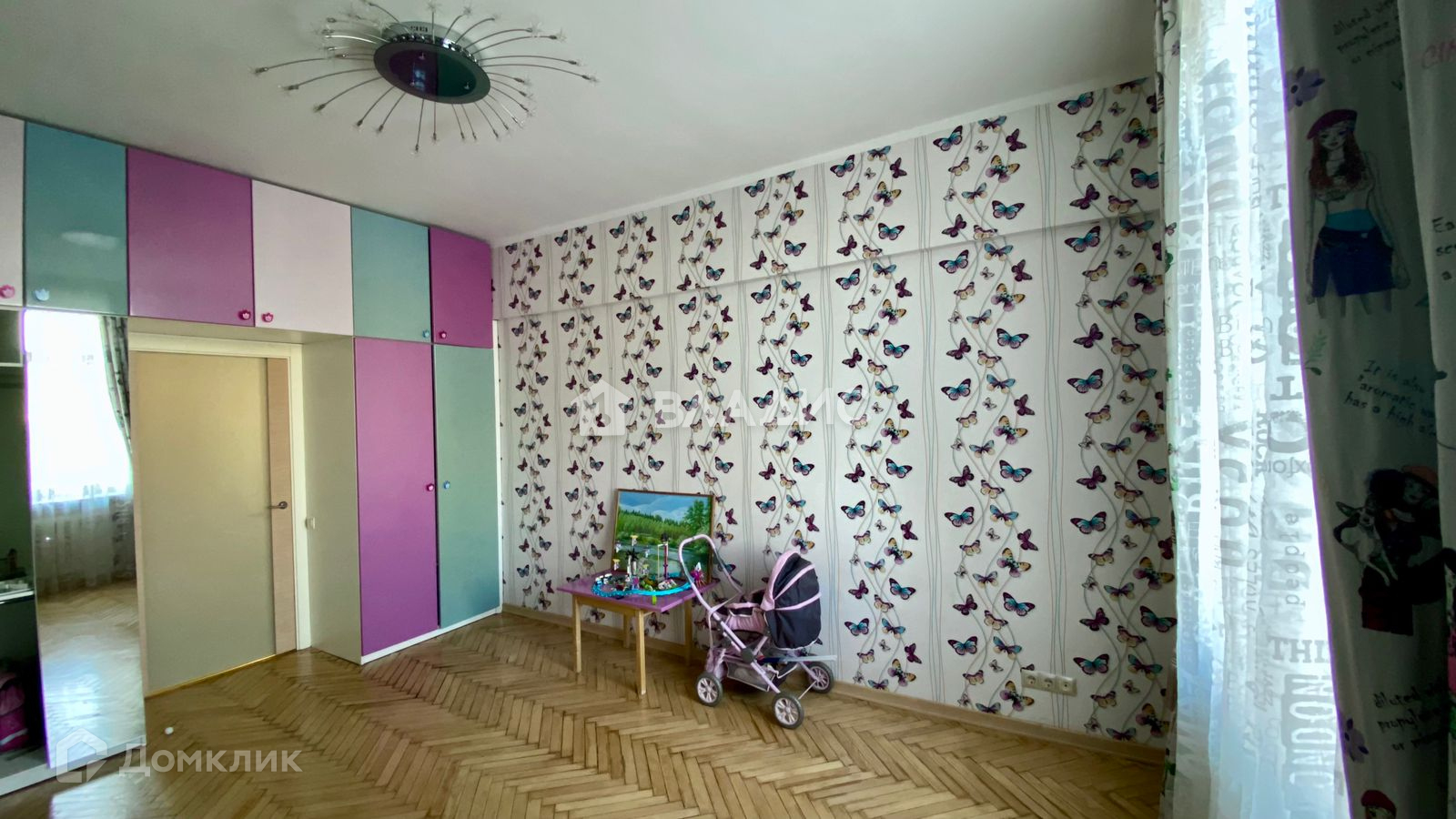 Встроенная кухня со стеклянными фасадами, стеклянная вытяжка. Столешница, стеновая панель, подоконник и откосы в кухне из кварцевого агломерата. Подоконник в детской, откосы на окне и балконных дверях деревянные светлого тона, на полу паркет, на кухне и в с/у плитка, водонагреватель Electrolux. Встроенные зеркальный шкаф-Stanley в спальне, шкафы в детской, 2 зеркальных шкафа и шкаф для хоз. вещей в коридоре. С/у раздельный.