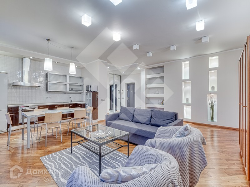 Планировка: просторная кухня-гостиная, две изолированные комнаты, гардеробная, большая ванная комната, холл.